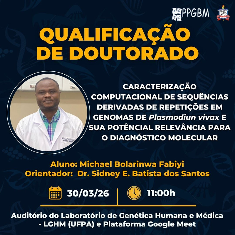 Local: Auditório do Laboratório de Genética Humana e Médica - LGHM (UFPA) e Plataforma Google Meet